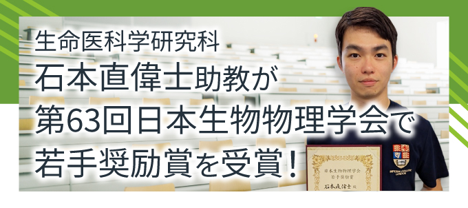 生命医科学研究科の石本直偉士助教が、第63回日本生物物理学会で若手奨励賞を受賞!