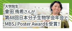 生命医科学研究科 博士後期課程2年 構造生物学研究室所属の菊地 杏美香さんが、第48回日本分子生物学会年会で、MBSJ Poster Award 2025とMBSJ-EMBO Poster Award 2025を同時受賞しました。おめでとうございます!